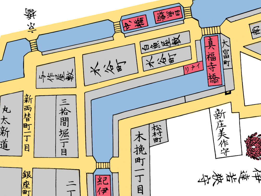 ちなみに伊丹屋のあった神田鎌倉横町は正確には鎌倉横町南側代地といって、現在の神田駅と日本橋側の間くらいにあった町です。