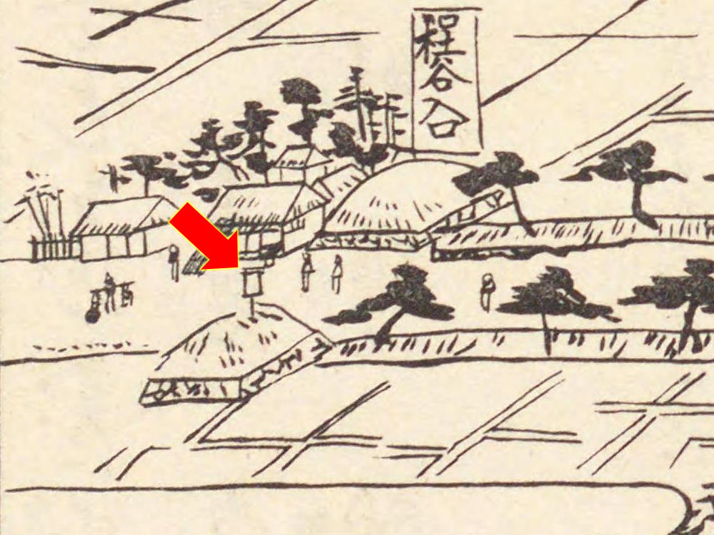 関札らしきものが、先ほどの保土ケ谷宿の江戸側入口の絵の土居の横に描かれています。