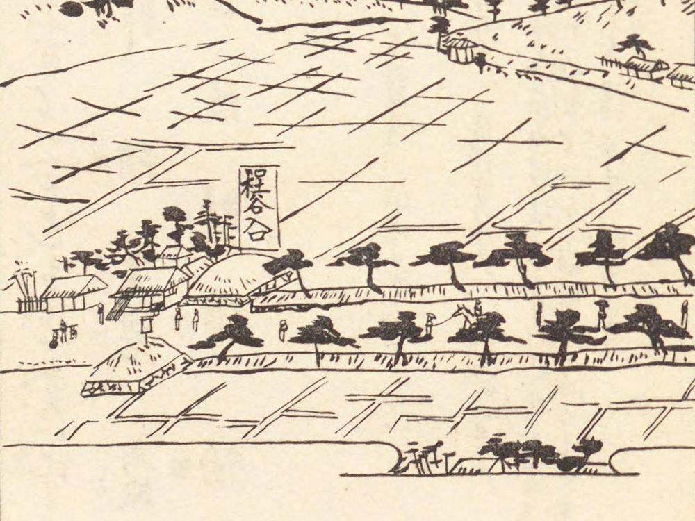 残念ながら「金川砂子」は保土ケ谷宿の江戸側入口で終了していますので、京側の土居は出てこないのですが、おそらく同じような土居があったものと考えられます。