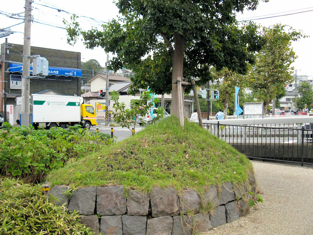 ところで、保土ケ谷宿の上方見附跡に復元された土居のすぐ横を見ると・・・