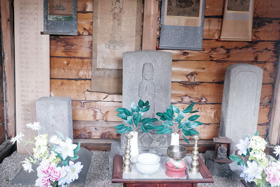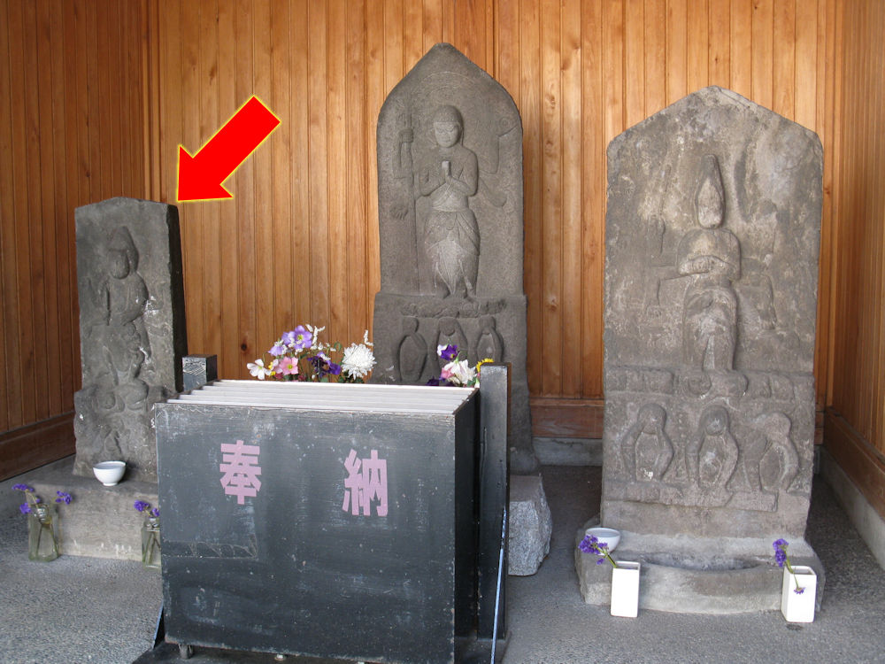 こちらは歩道のすぐ脇に祠があり、堅牢地神塔と並んで庚申塔が置かれていました。