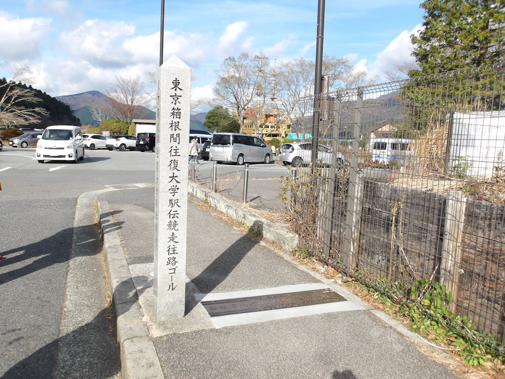 箱根駅の中継映像や、ニュース写真で見たときはとても広い道でゴールしているように見えます。しかし中継をよく見てみると、往路アンカーの選手はたしかに大通りから信号を右折して少し細い道に入ってゴールしています。