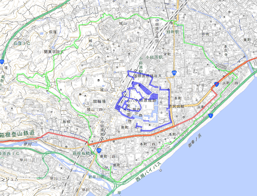 現在は観光名所としての小田原城は、天守閣が再建されている本丸と、その周辺の二の丸・三の丸など、実は小田原城のほんのごく一部にすぎなかったのです。