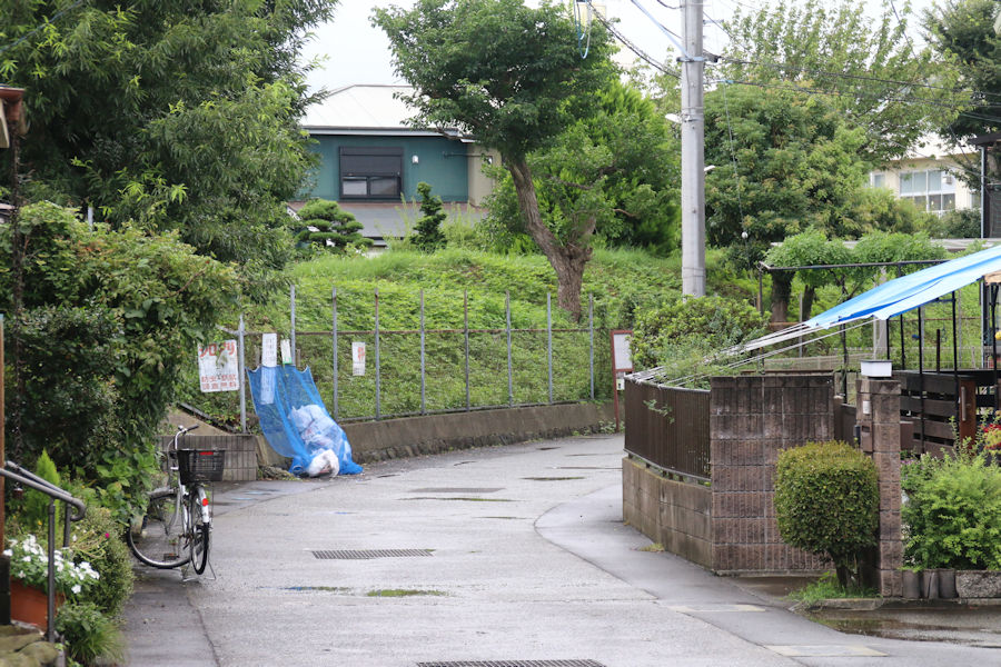 住宅地の中に土塁がつづいています。