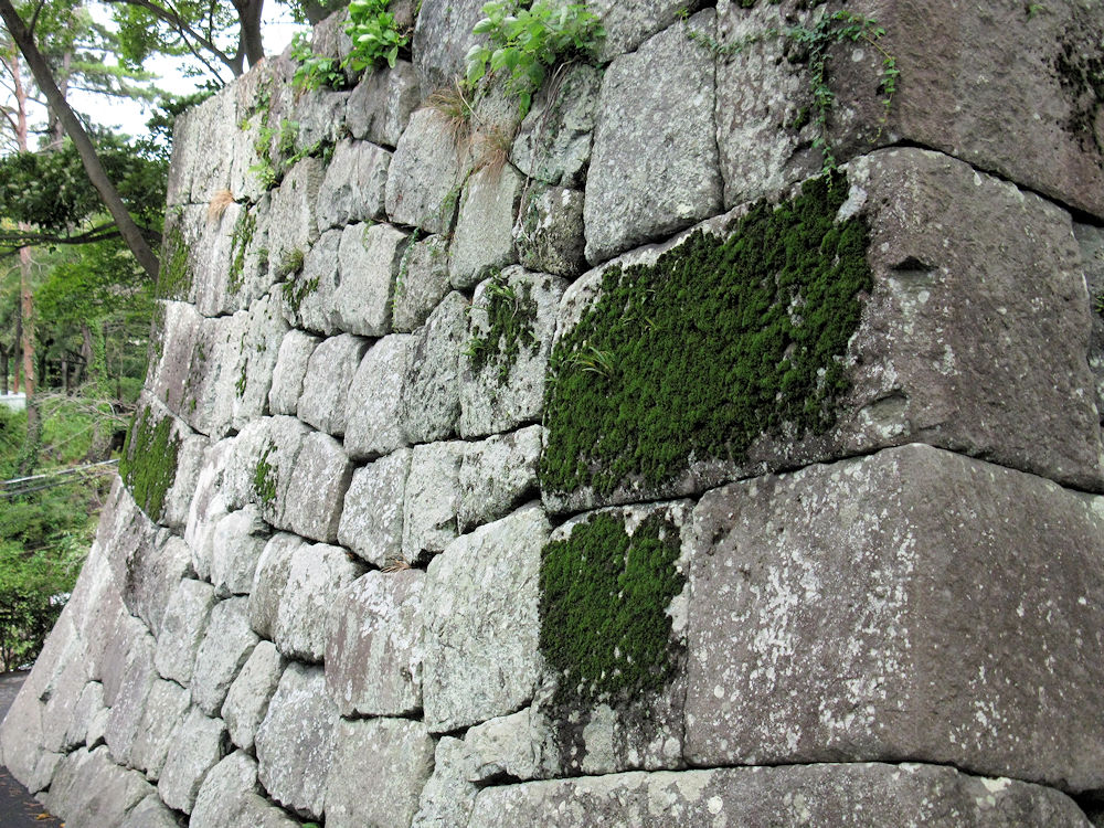 天守閣の下のアスファルト舗装をされた通路沿いには、すぐ近くに石垣石を見ることができます。