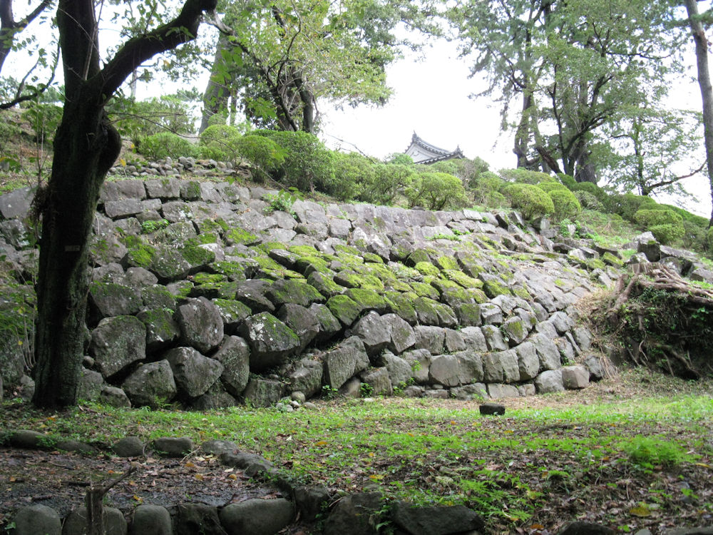 現在は天守閣の下は土の斜面でツツジなどが植えてありますが、かつては斜面の上部は石垣で覆われていました。