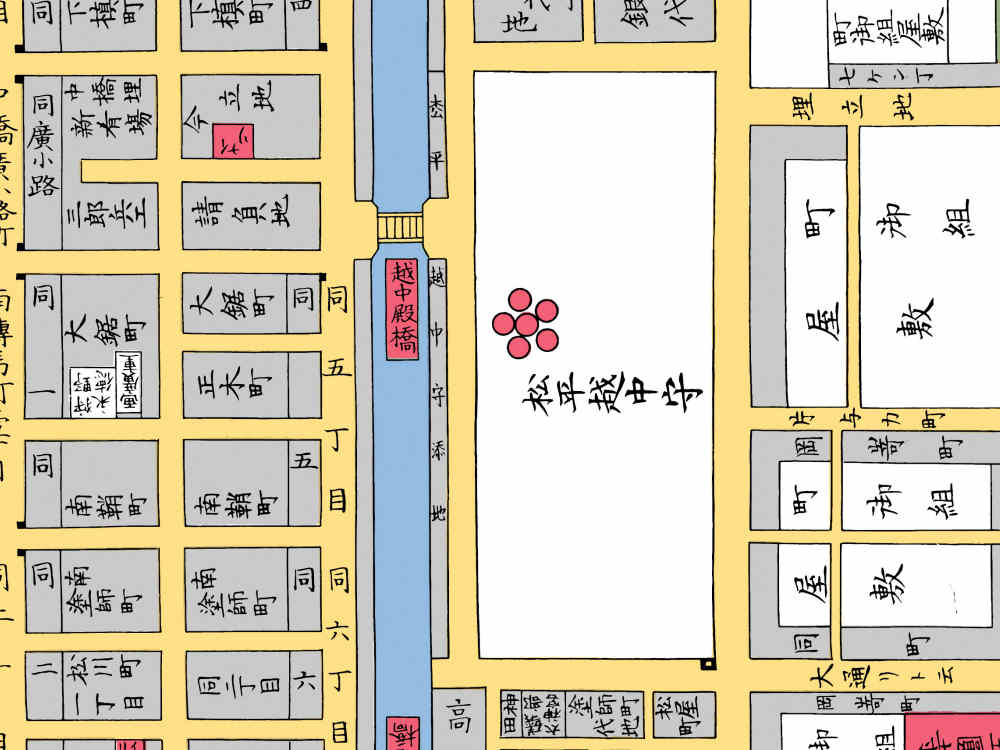 明和9年発行の「江戸大絵図」には「松平越中」と描かれています。