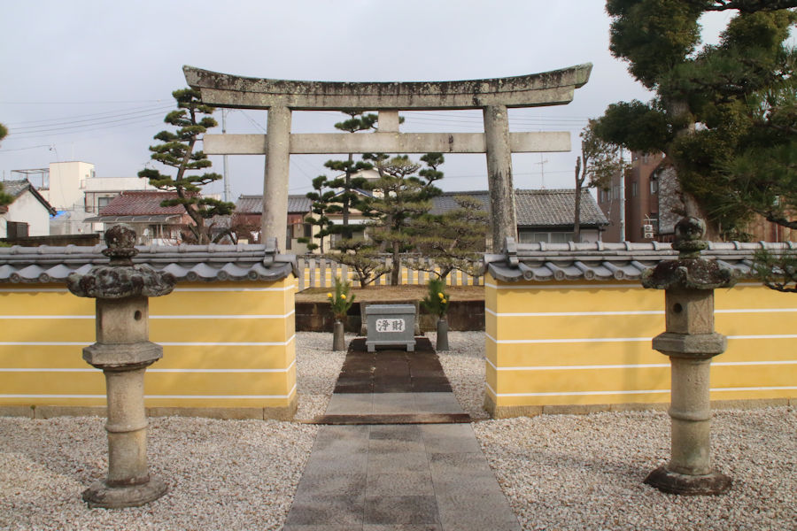 墓所の鳥居と土塀