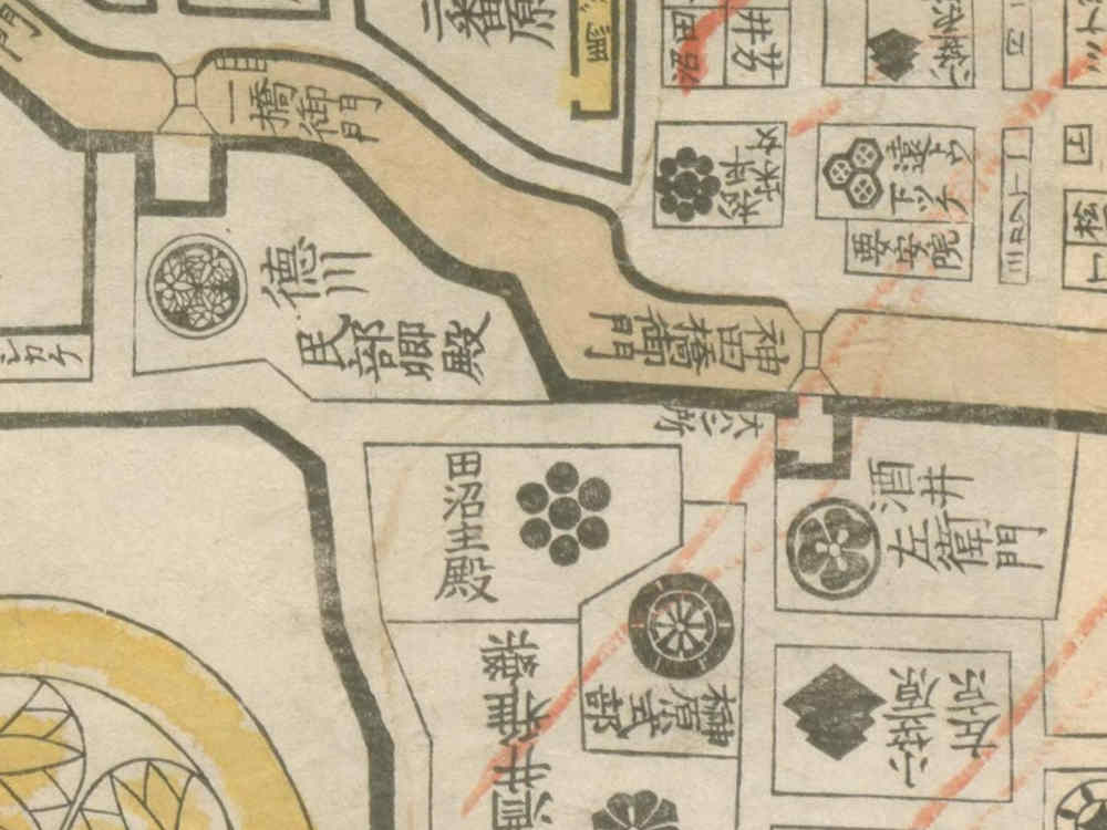 「神田橋御門」の下に「田沼主殿」と書いてあるところが田沼意次の屋敷です。