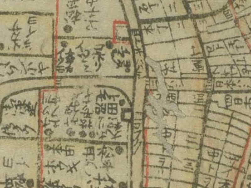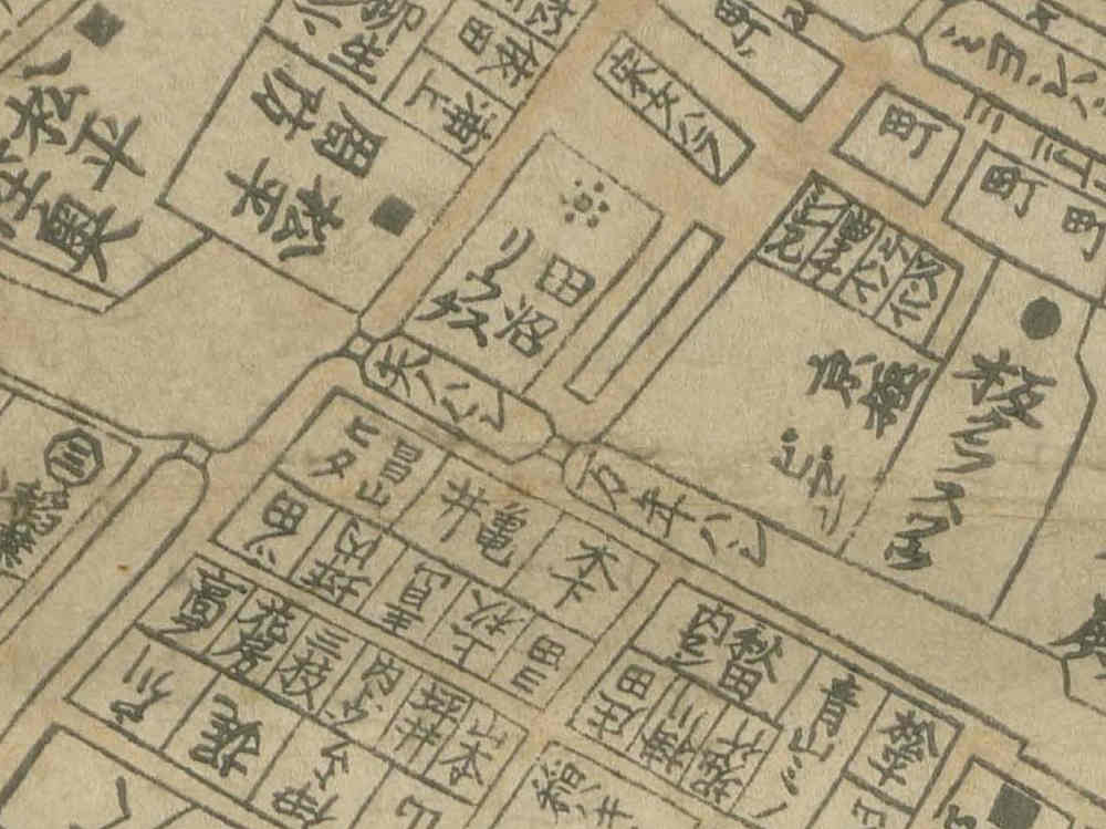 意次死後の寛政4年(1792)の地図には、築地の万年橋と矢の橋(現在の采女橋)の北に「田沼リウスケ」と書かれた屋敷が描かれています。