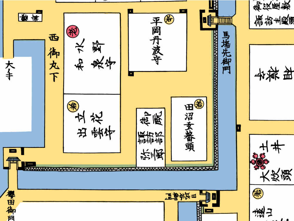 大名には原則として幕府から上屋敷(藩主の住居)・中屋敷(予備の屋敷)・下屋敷(別荘)が与えられますが、意次が上屋敷を与えられた場所は呉服橋門内でした。