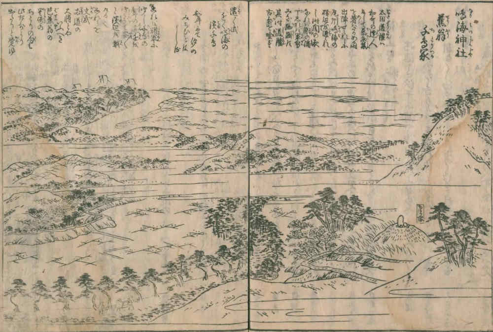 「東海道名所図会」には、海と高台の上の碑の様子が描かれています。