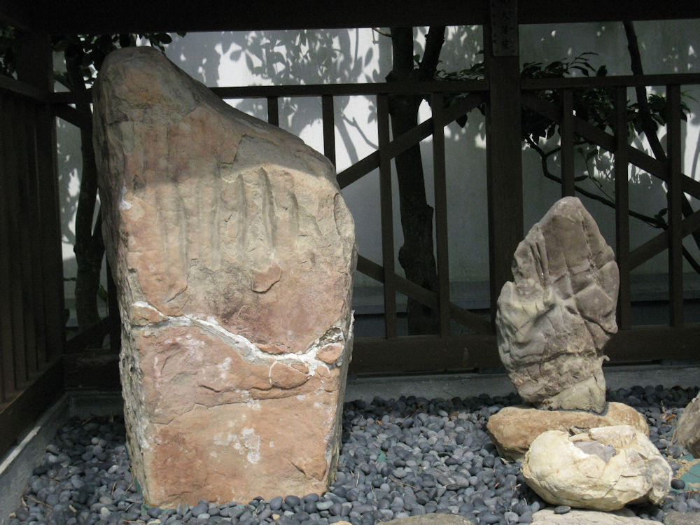 石をこすりつけて磨くのに使った溝が、石には幾筋も残されています。