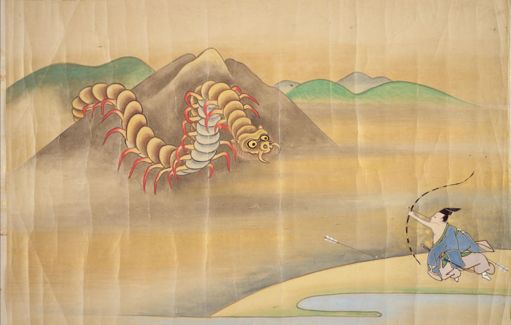 オオムカデのために苦しめられたのは瀬田川に住む竜王も同じで、藤原秀郷に頼んでオオムカデを退治してもらいました。