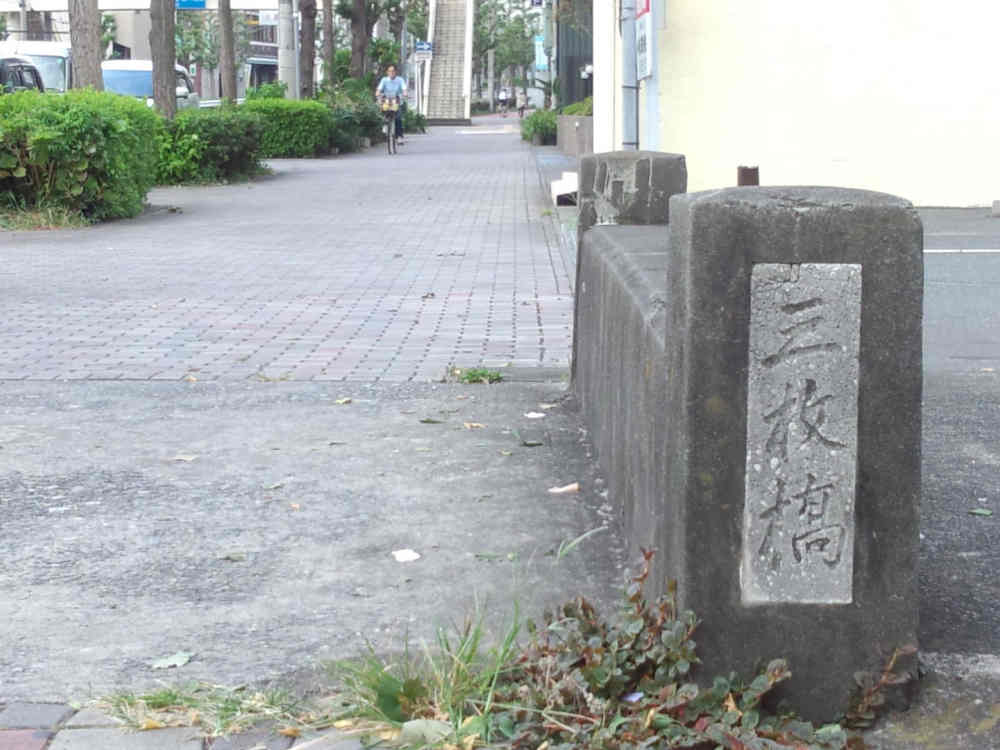それぞれ「川の中に2つの中洲があり、3枚の橋で渡っていた」「3枚の石で橋ができていた」などというのが橋の名前の由来とされています。