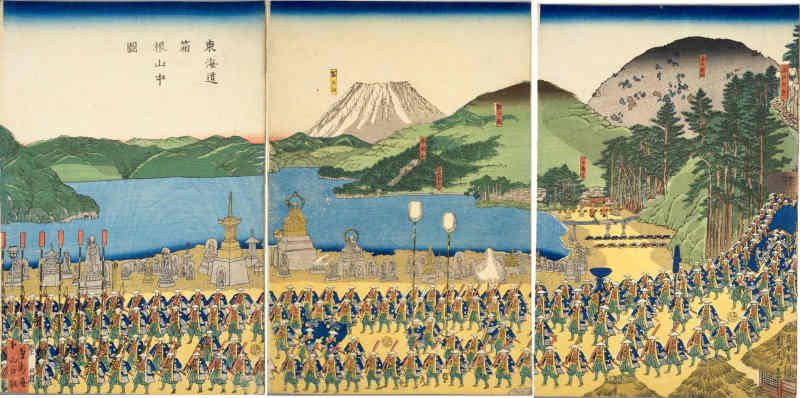 この浮世絵のまん中に描かれている地蔵の大仏も、現在は小田原宿に移されています。