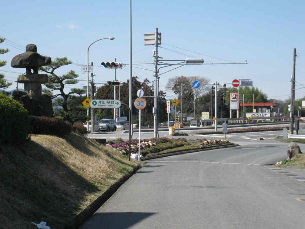 それに対して東の境にあった傍示石は、今は両方とも甲賀市になってしまいましたが、かつての土山町と水口町の境(現在の大野西交差点付近)の稲川のほとりにありました。