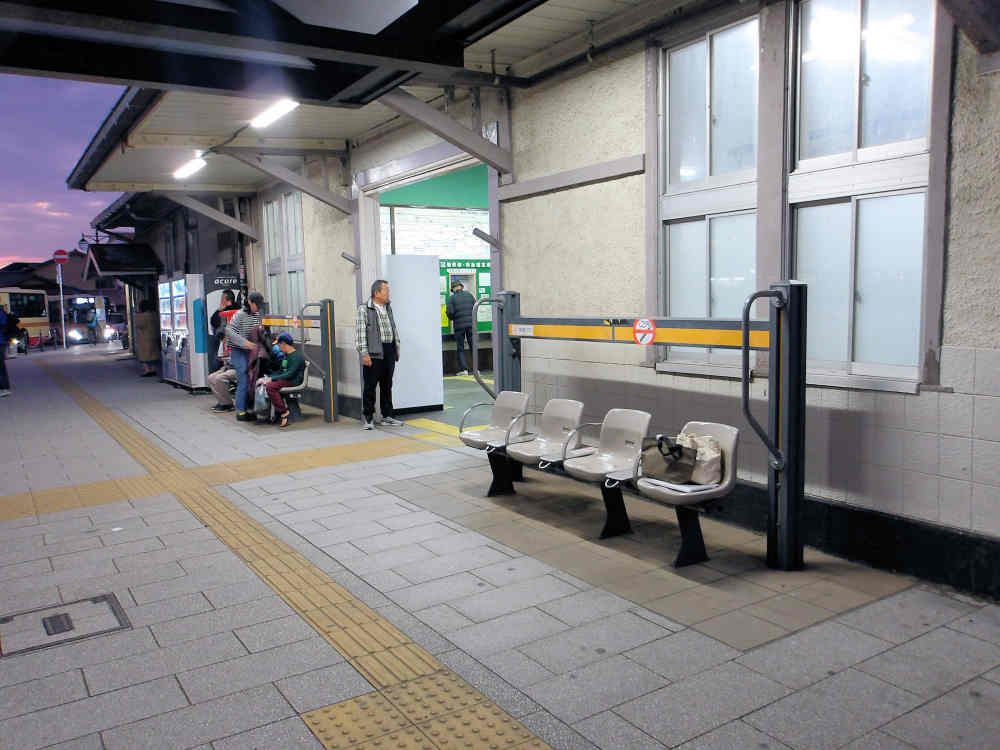 駅舎入口付近のベンチのある場所でお待ちしております。