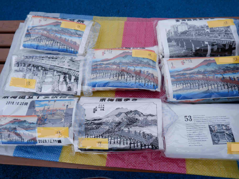 みなさまから写真・絵などのデータを送っていただき、それで製作することも可能です。東海道を歩く途中で撮影した写真や、ご自身で描かれたイラストなどでいかがでしょうか? メールやファイル送信サービスなどでJPG形式で送ってください。印刷サイズはA4と同じ大きさです。A4用紙に印刷したとき、画像が粗くならない程度の大きさの画像ファイルを送ってください。
